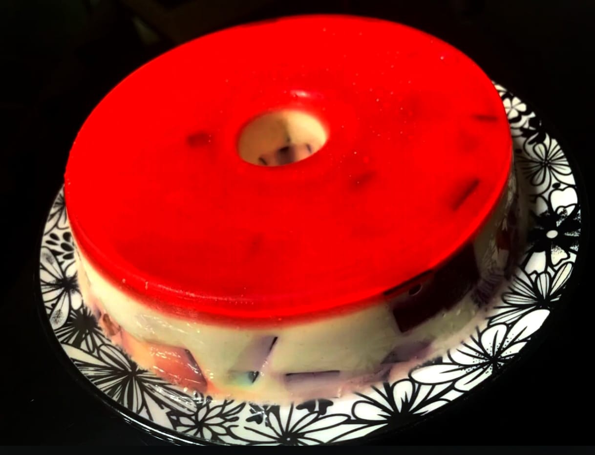 A mistura de cores e sabores em um doce clássico, que nos traz lembrança da infância! É leve e refrescante. Serve de 8 a 10 pessoas